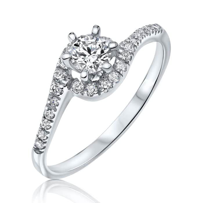 טבעת קלאסית עיצובית אבן מרכזית 0.25 קראט עוד 0.22 קראט בצדדים צבע H רמת ניקיון SI1.
