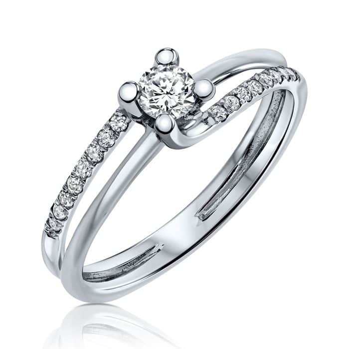 טבעת קלאסית עיצובית עם אבן מרכזית בגודל 0.17 קראט ועוד 0.10 קראט יהלומים בצדדים צבע H רמת ניקיון SI1.