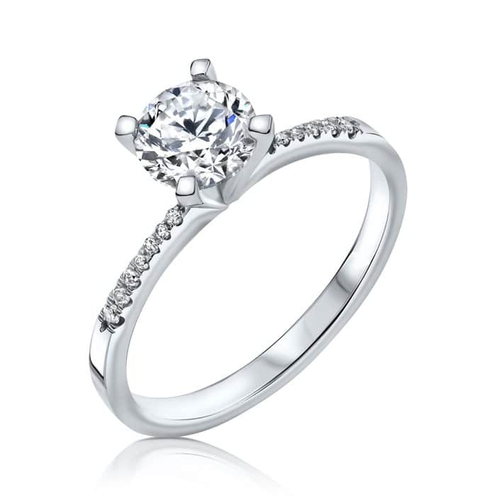 טבעת קלאסית עם אבן בגודל 0.27 קראט ועוד 0.13 קראט בצדדים צבע H רמת ניקיון SI1.