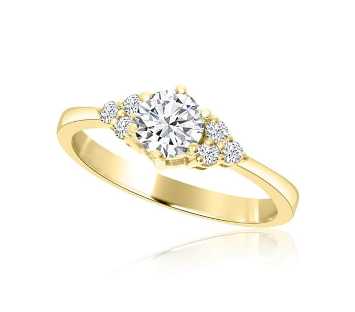 טבעת קלאסית מעוצבת עם אבן חצי קראט במרכז ועוד 0.12 קראט בצדדים צבע H רמת ניקיון SI1.