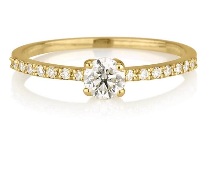 טבעת קלאסית עם אבן מרכזית בגודל 0.23 קראט ועוד 0.12 קראט בצדדים צבע H רמת נקיון SI1.