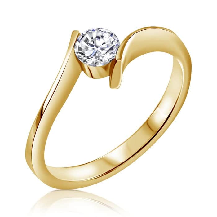 טבעת סוליטר קלאסית משובצת אבן מרכזית בגודל 0.20 קראט צבע H רמת ניקיון SI1.