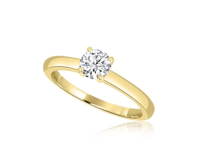 טבעת סוליטר קלאסית משובצת אבן מרכזית בגודל 0.25 קראט צבע H רמת ניקיון SI1.