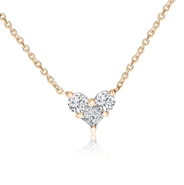 שרשרת לב 2 אבנים עגול ואבן אחת חיתוך פרינסס 0.18 קראט צבע H רמת ניקיון SI1.