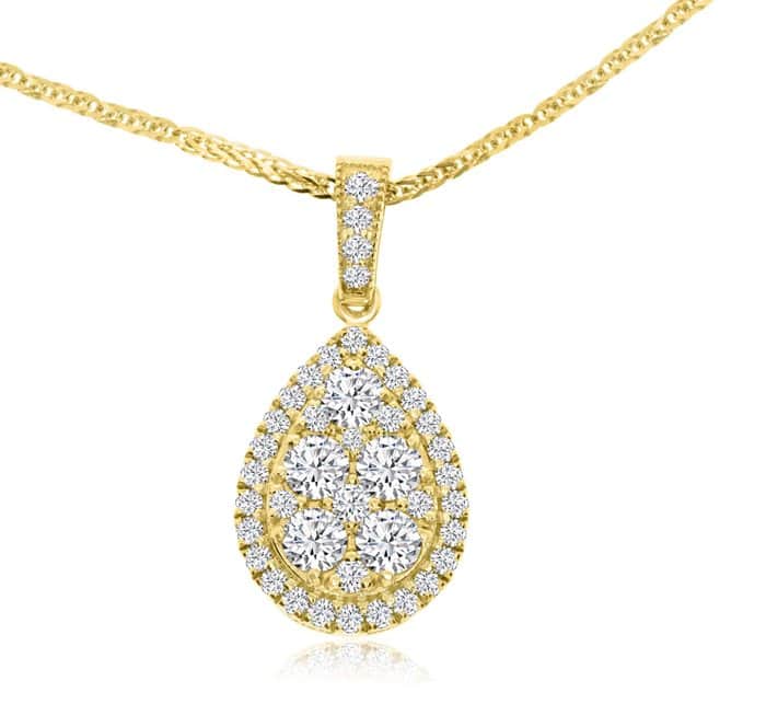 שרשרת תליון צורת טיפה משובצת יהלומים 0.80 קראט צבע H רמת ניקיון SI1.